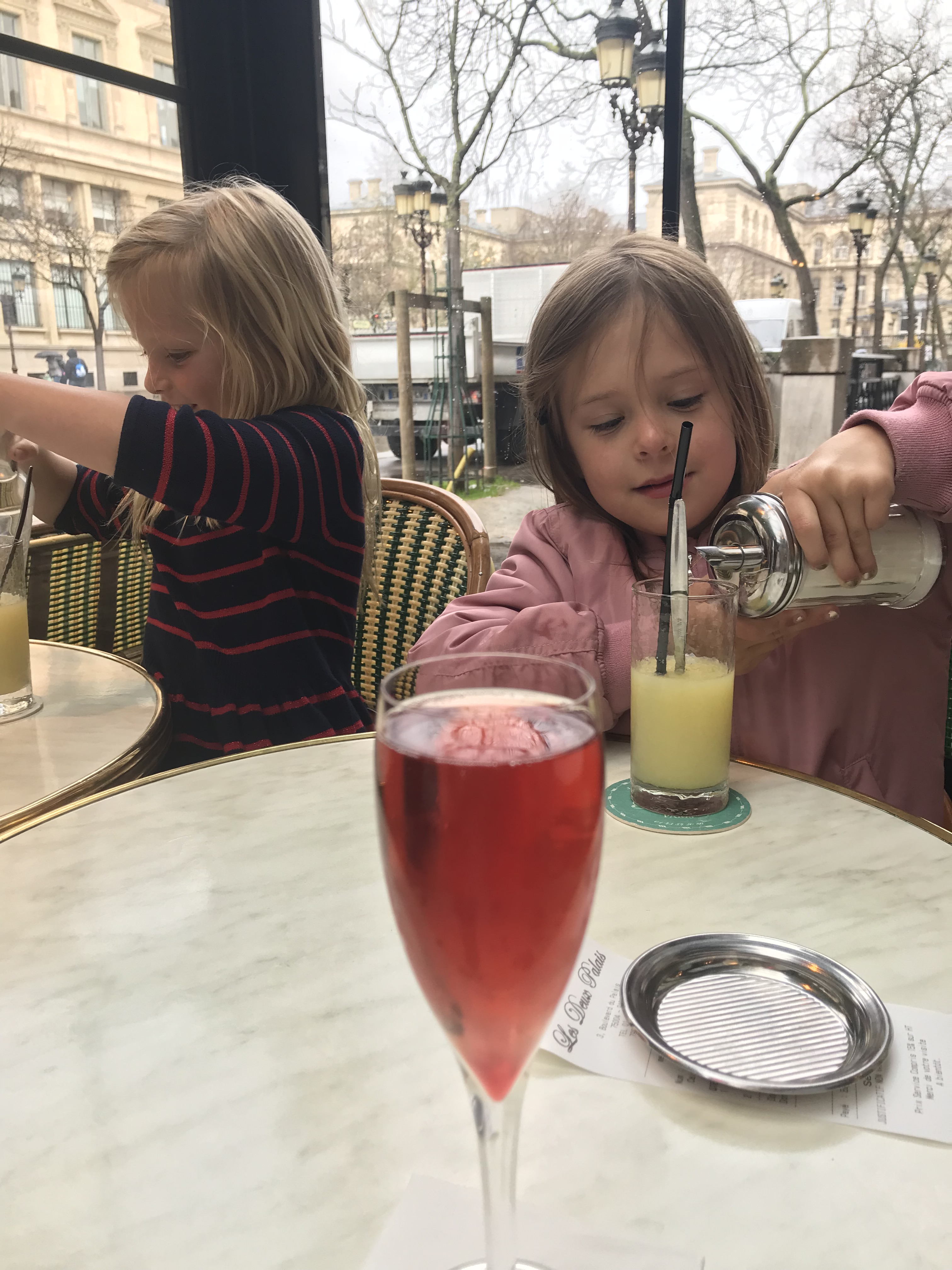 Feeling tired? Stop in any café for café, kir or glass of wine and order a citron presse or a hot chocolate for the kids. Ainsley and her friend loved making their own lemonade from fresh squeezed lemon juice, sugar and water. Making their drink was half the fun.