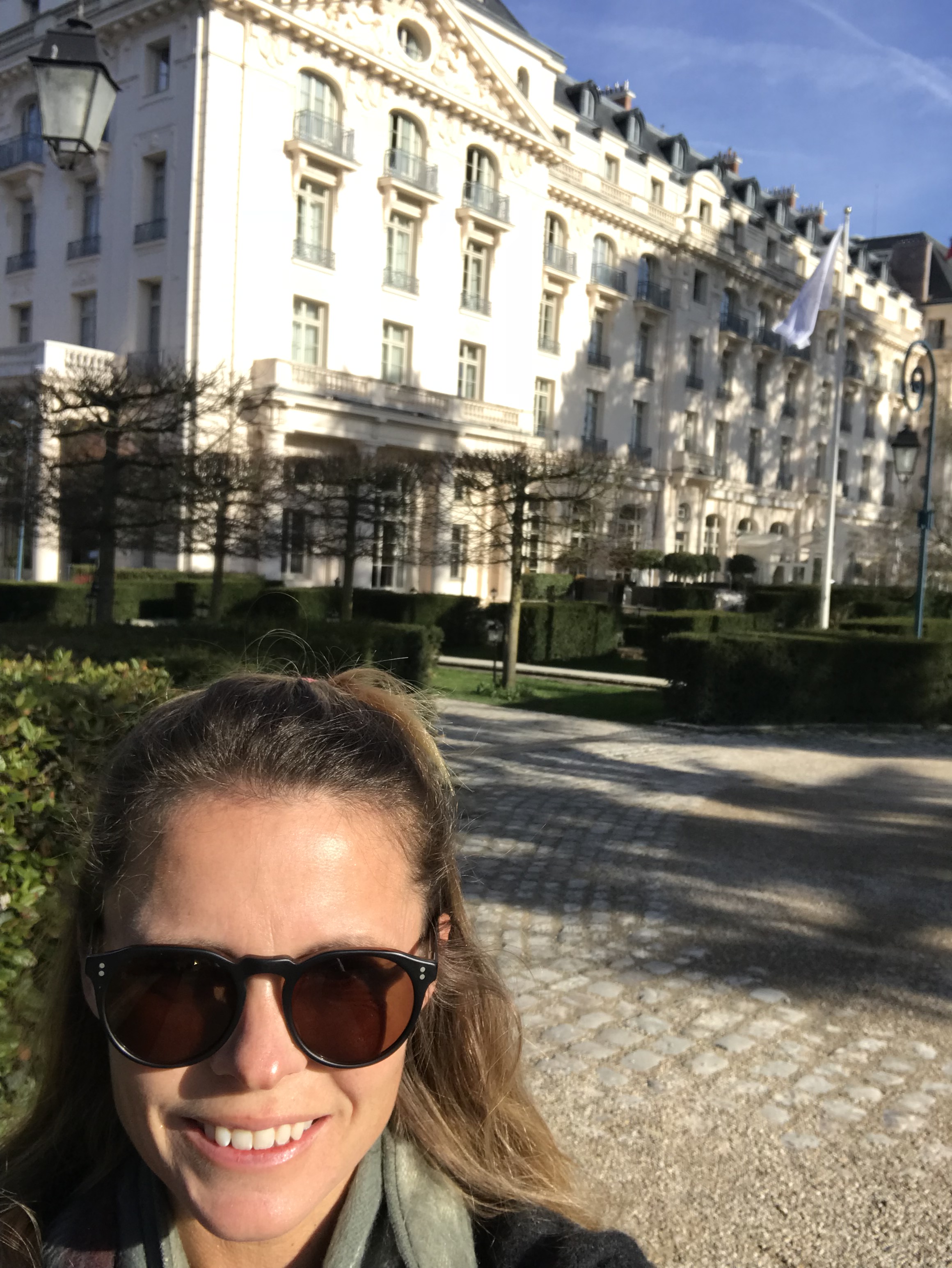 We loved the hotel! It was beautiful and ideally situation just outside the gardens of Versailles. Ainsley loved swimming in the indoor pool. I enjoyed having an aperitif and macaroons in the loggia, and being able to walk to the chateau through the gardens in the morning. We used 59,000 Hilton points for our room.