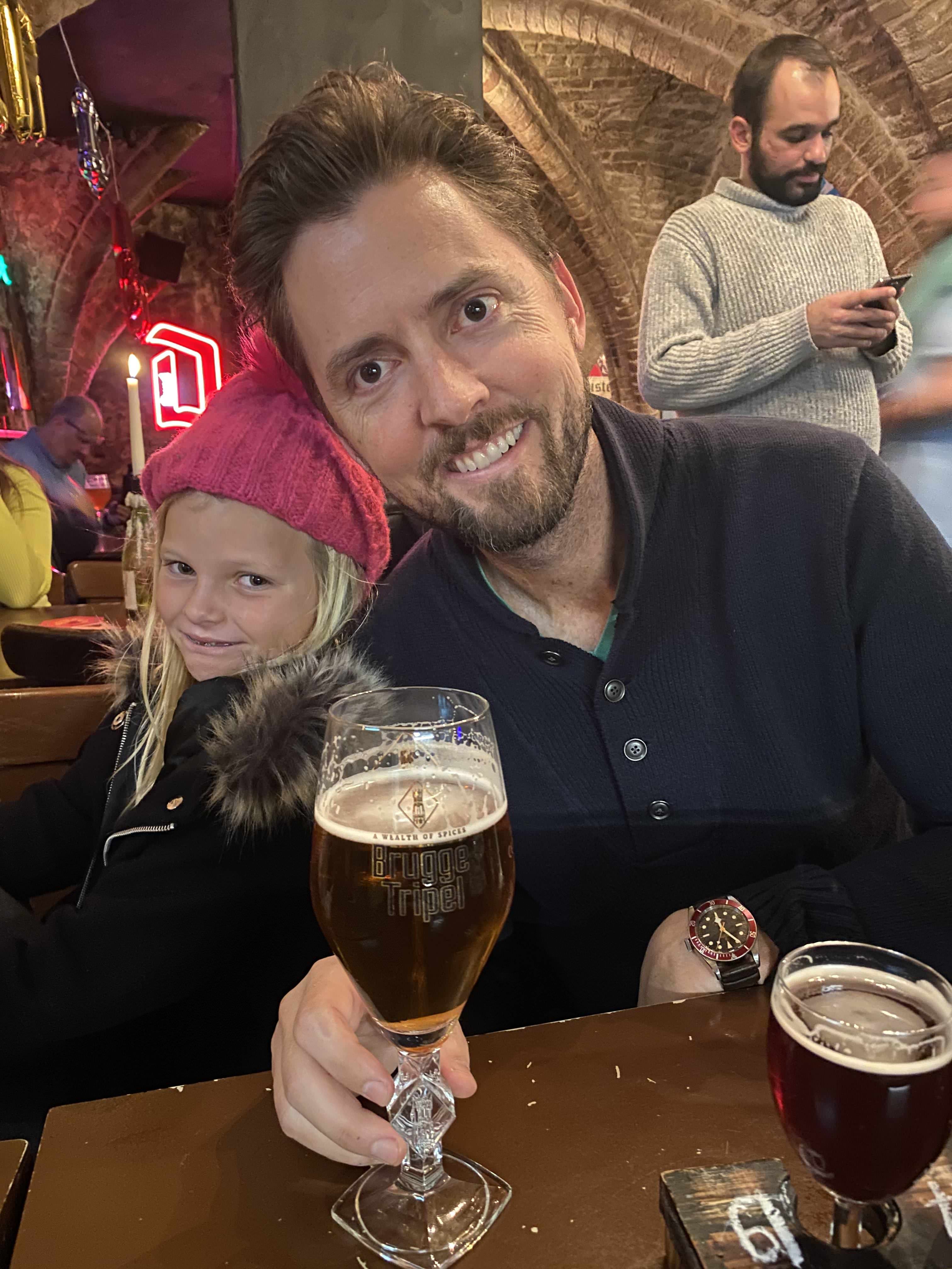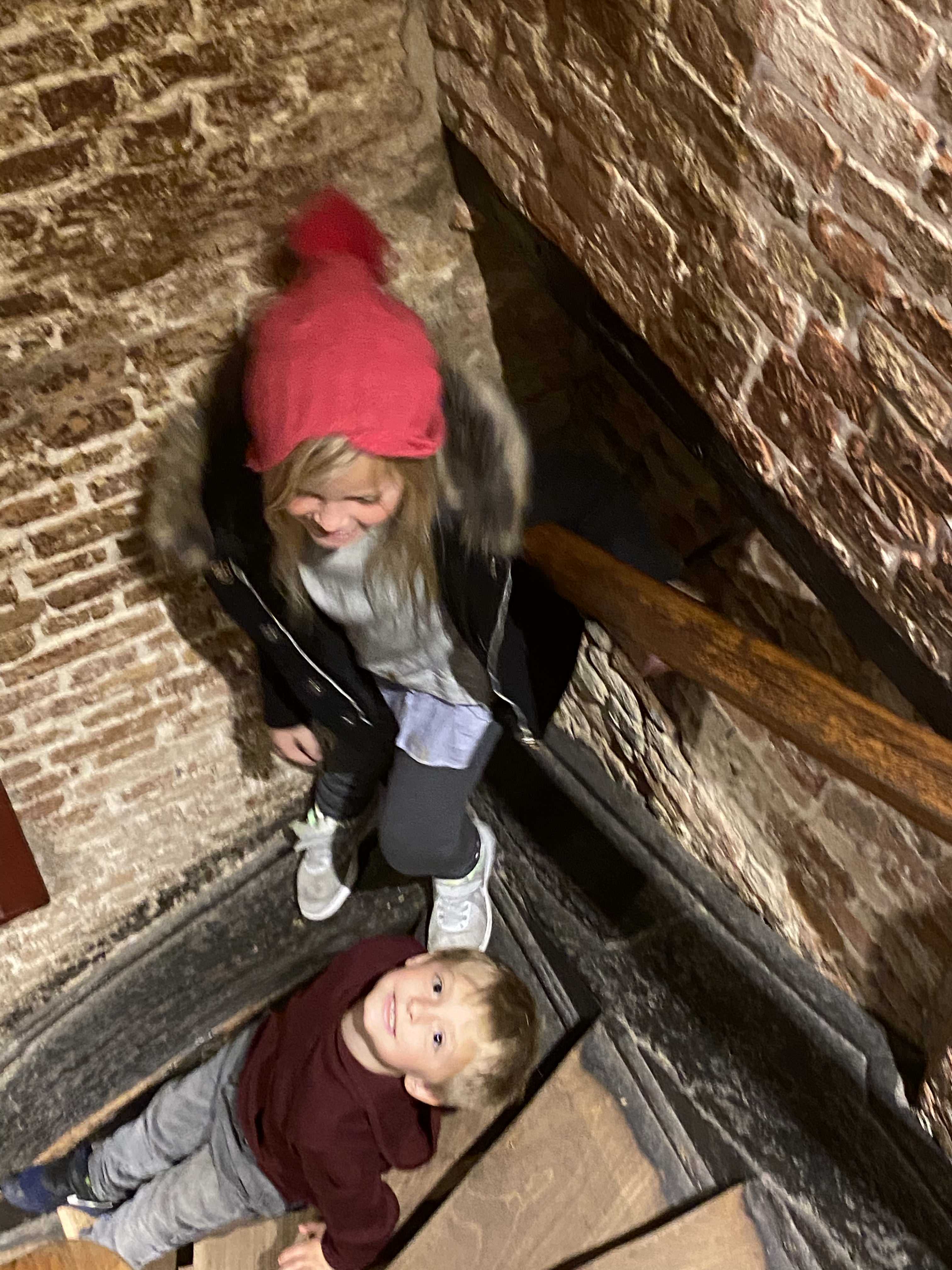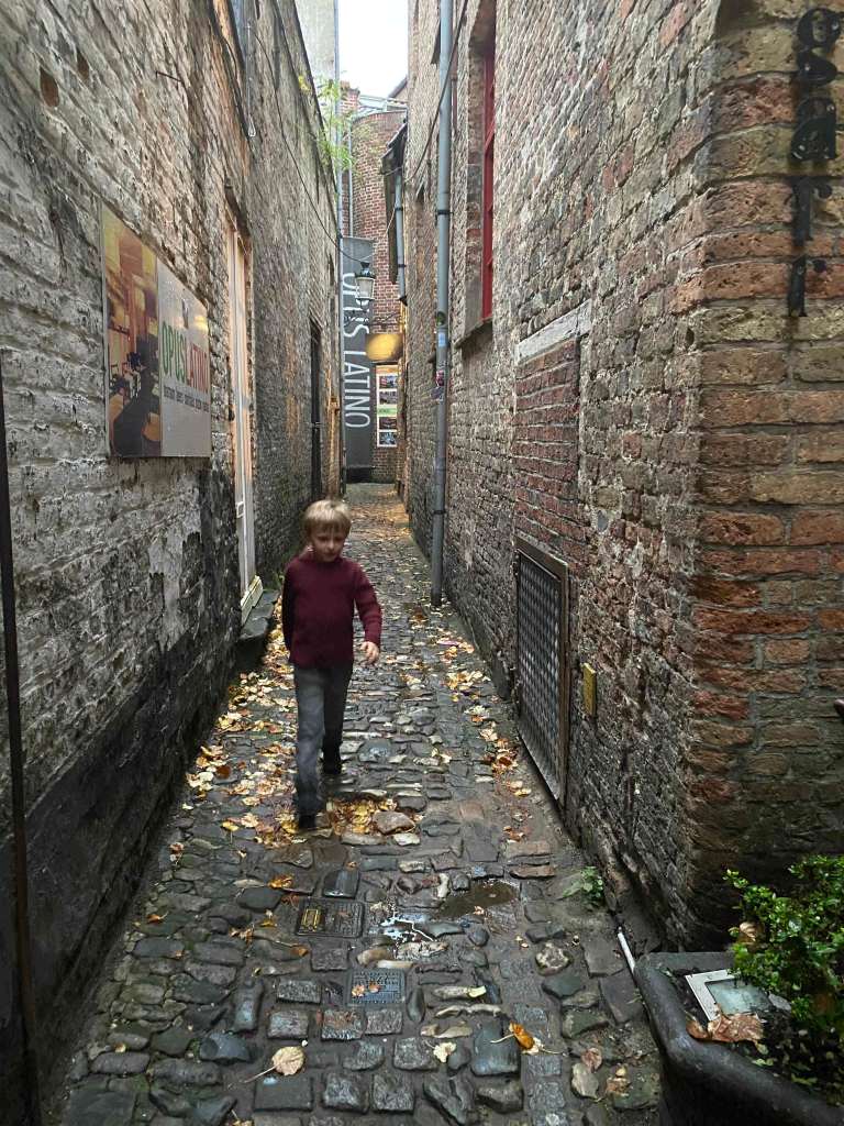 De Garre – This charming brewery is right in the heart of town near the main square. It is tucked away down a little ally. The beer was fantastic! Spencer loved the money wall, and both kids loved sliding down the tiny spiral staircase.
