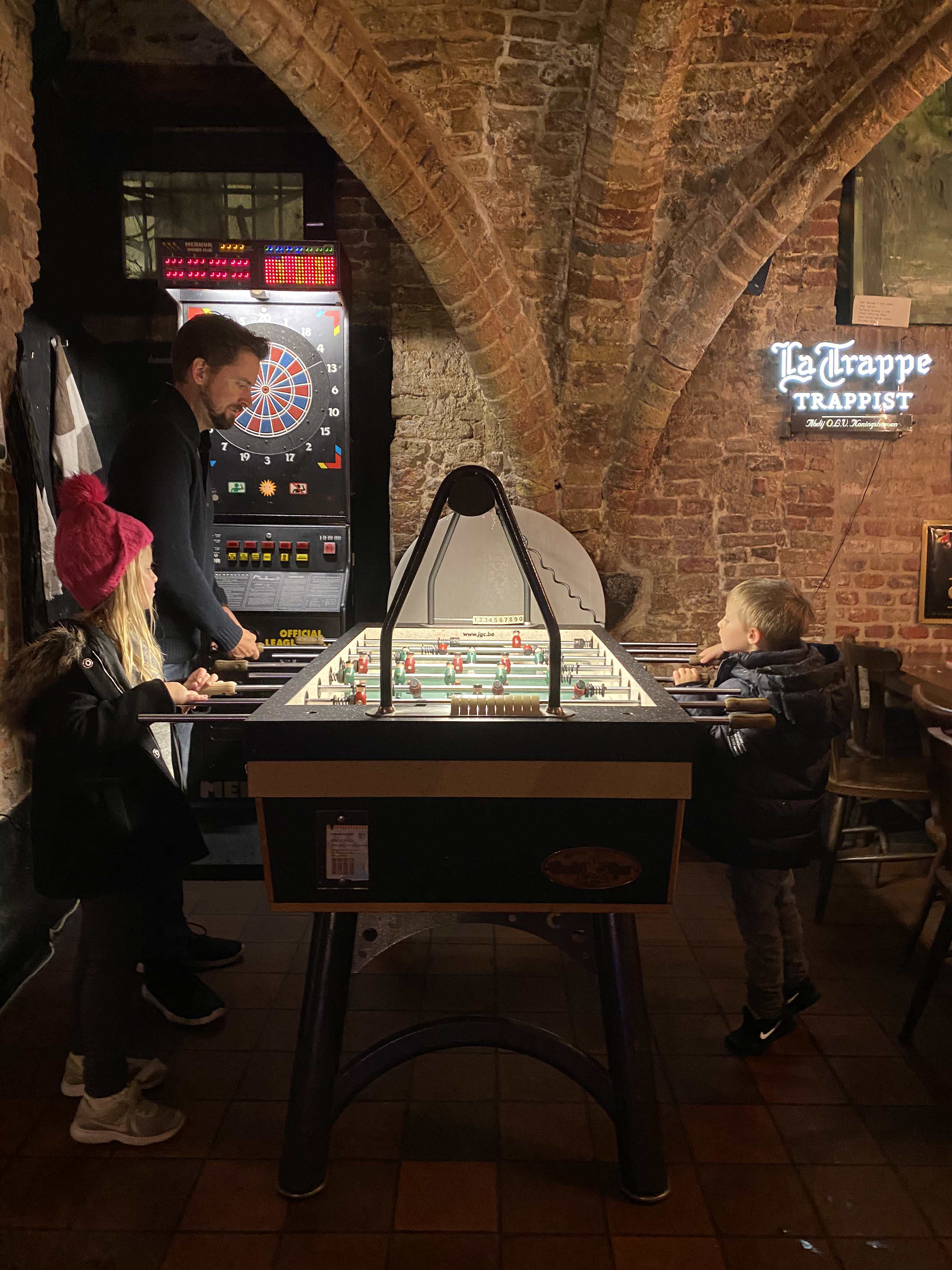 Le Trappiste – Loved this charming beer bar located in an 800 year old medieval cellar. The brick vaulted ceilings and candles added to the ambiance. The beer was fantastic, and the kids loved the foosball table!