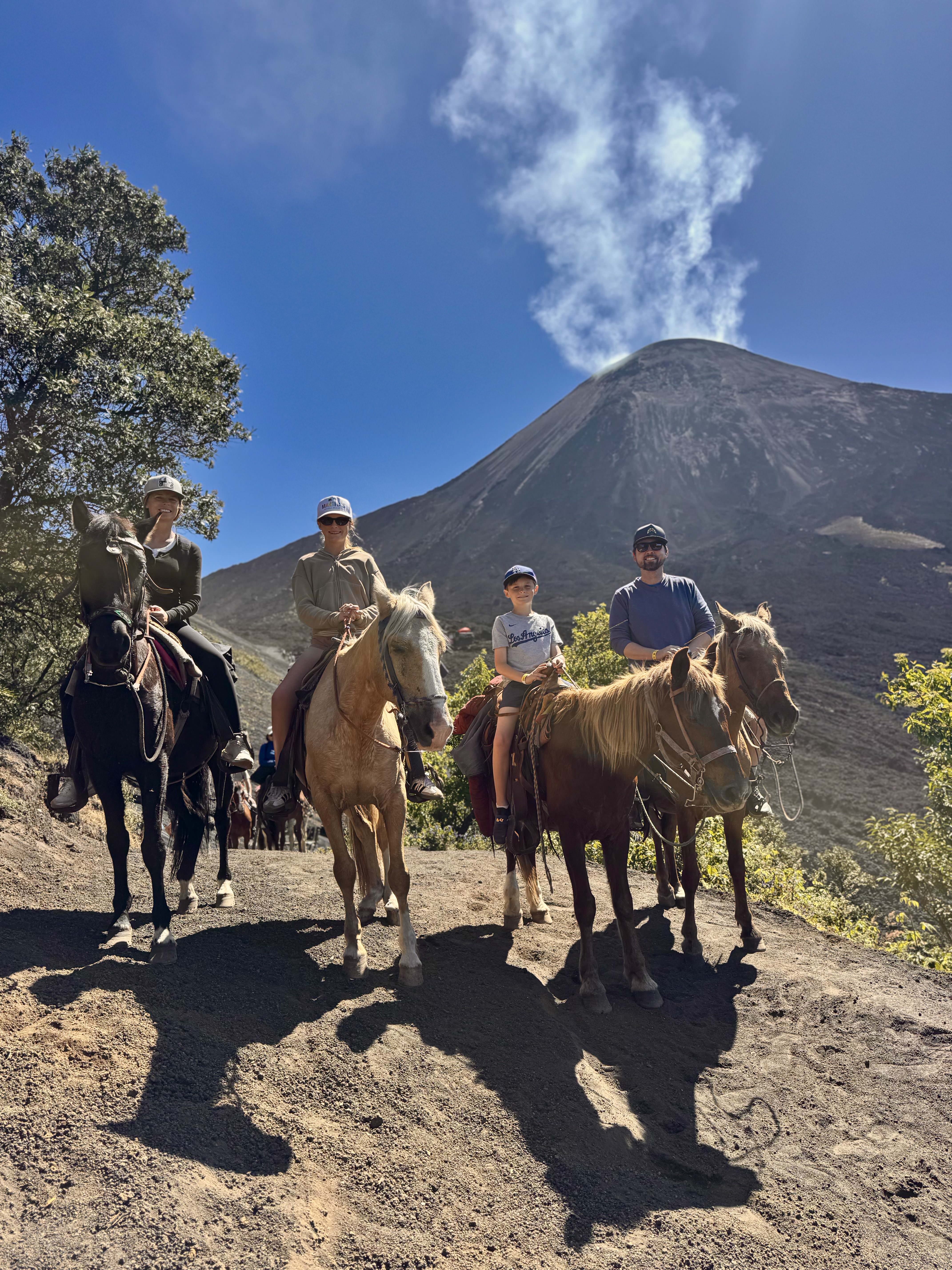 You can’t visit Antigua with out a trip to one of the near by active volcanoes. We chose to do the horseback ride up Volcan Pacaya. You can opt to hike or to rent horses which was a lot of fun for the kids and definitely less strenuous. The trail is quite steep. The vistas were incredible. When we reached the top we ate pizza that they cooked on a steam vent and then roasted marshmallows for dessert. The landscape at the top of the volcano was barren from a recent lava flow and the volcano was smoking. It was beautiful and other worldly.